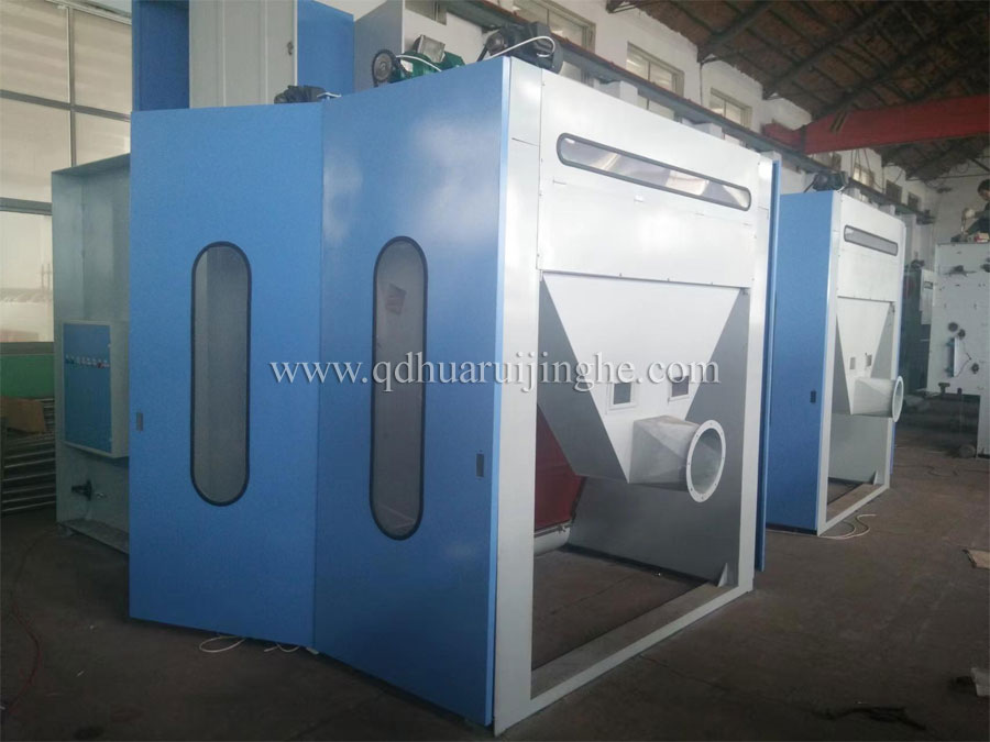 其作用是将经过开松辊混合后的纤维经梳棉风机送入梳棉管道进入本机上棉箱,经上给棉罗拉送至开松辊进一步开松后落入下棉箱,经由振动筛,振实后形成筳棉层进入梳棉机,实现清梳联工序连续化。