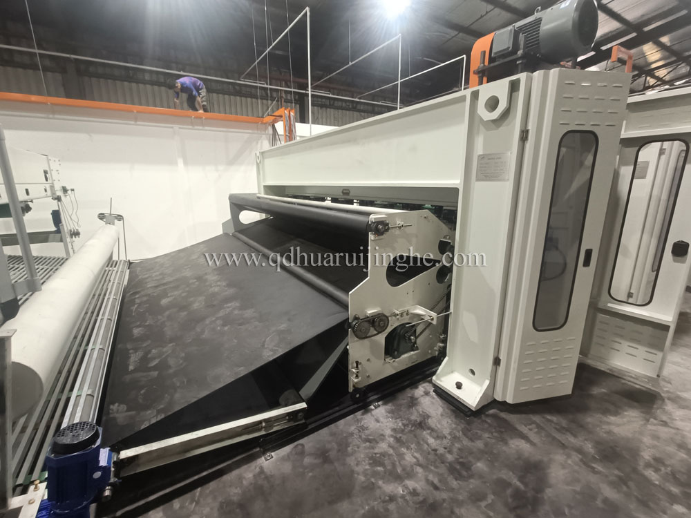 生产线用途:针刺无纺布生产线,适用于大棚保温毡、针刺棉、鞋材、油毡基布、土工布等针刺类产品主要技术参数:工作宽度:2500-8000mm产品宽度:2000-7500mm产品克重:100-800gsm产量:200-600kg/h生产流程:开松机-振动给棉机-梳理机-铺网机-针刺机-切边成卷机。