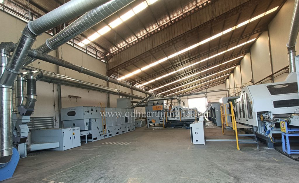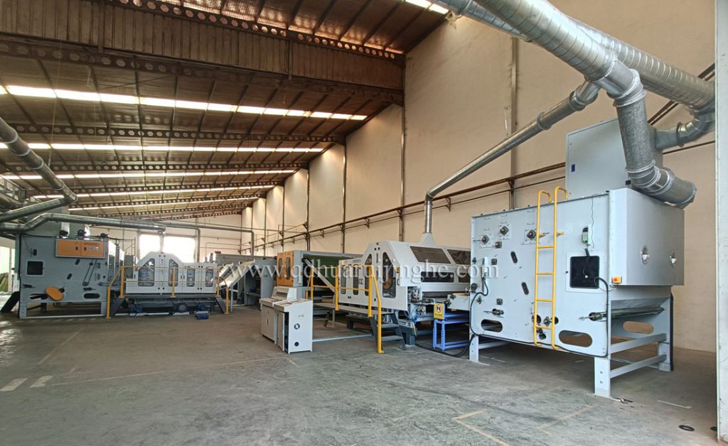 gd55光大在老品牌开包机——预开松——精开松——给棉机——梳理机——铺网机——烘箱——烫光机——成卷机。